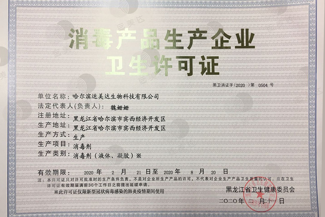 我司取得消毒品衛生許可證,現已投入生產消毒類產品