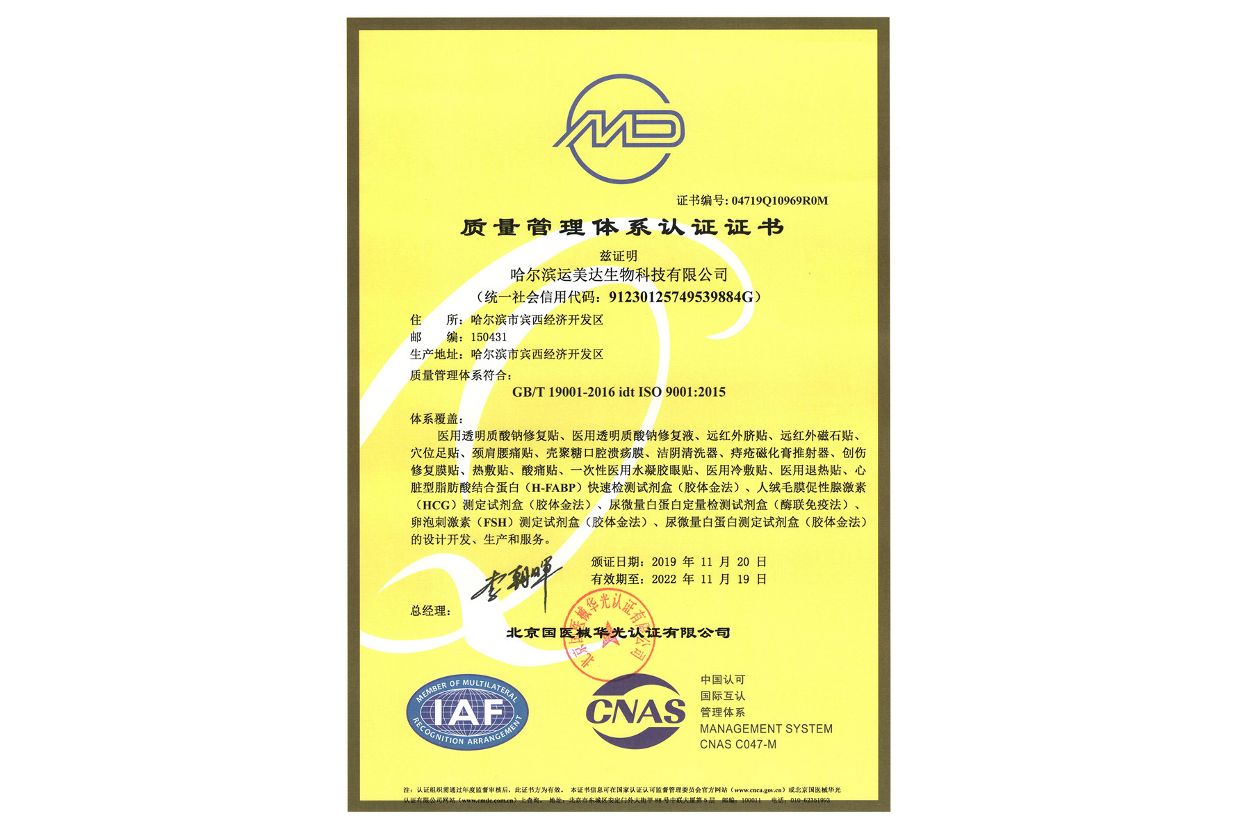 我公司通過北京國醫械華光認證有限公司質量管理體系認證